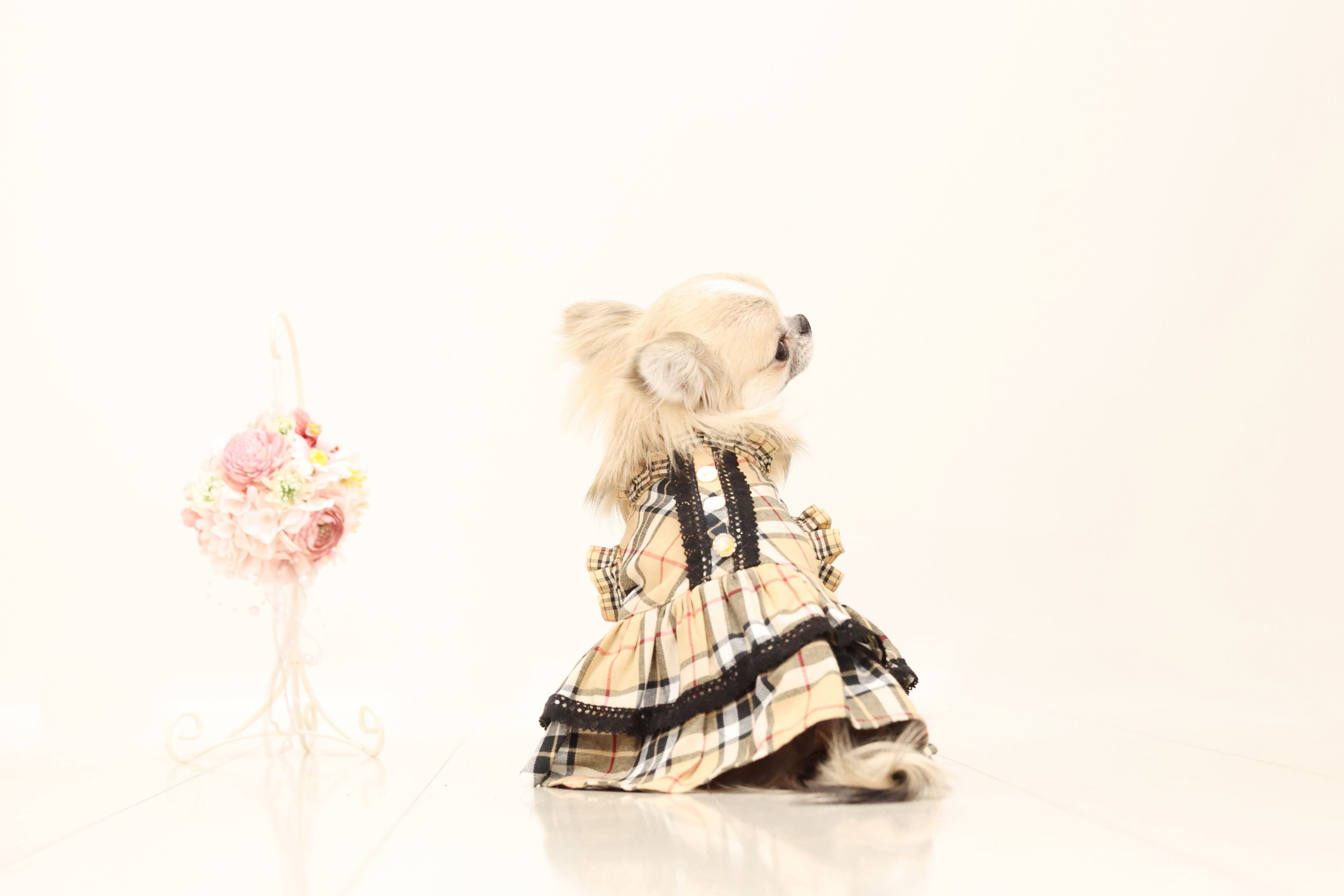 - モデル着用:XSサイズ(体重1.9kg、首周19cm、胸囲29cm)