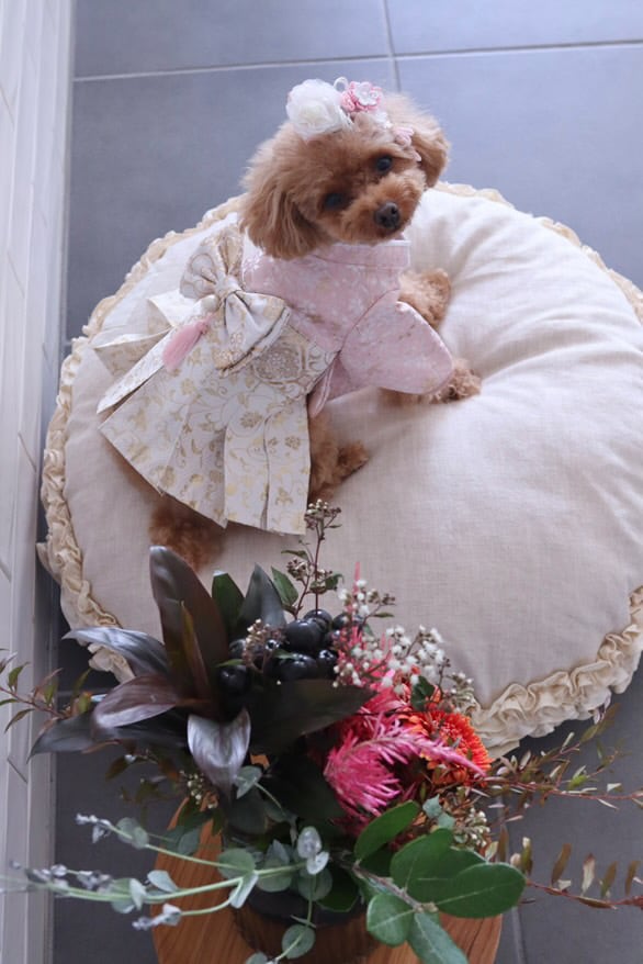 #袴でお出かけ #犬と神社 #犬の七五三 #薄桜色 #浅緑色 #犬の袴 #初めての袴 #愛犬
