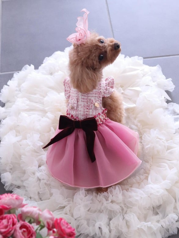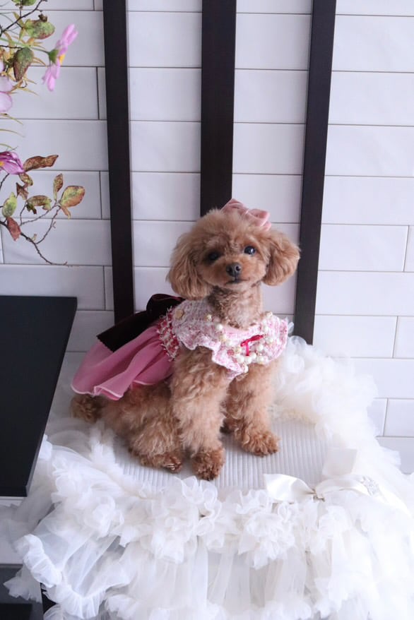 [着用モデル]Macaronちゃん:首周り16cm 胸囲26cm 着丈25cm 体重1.6kg
