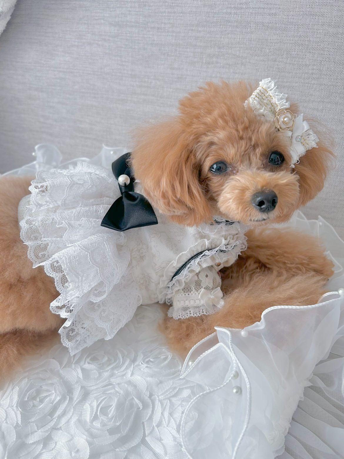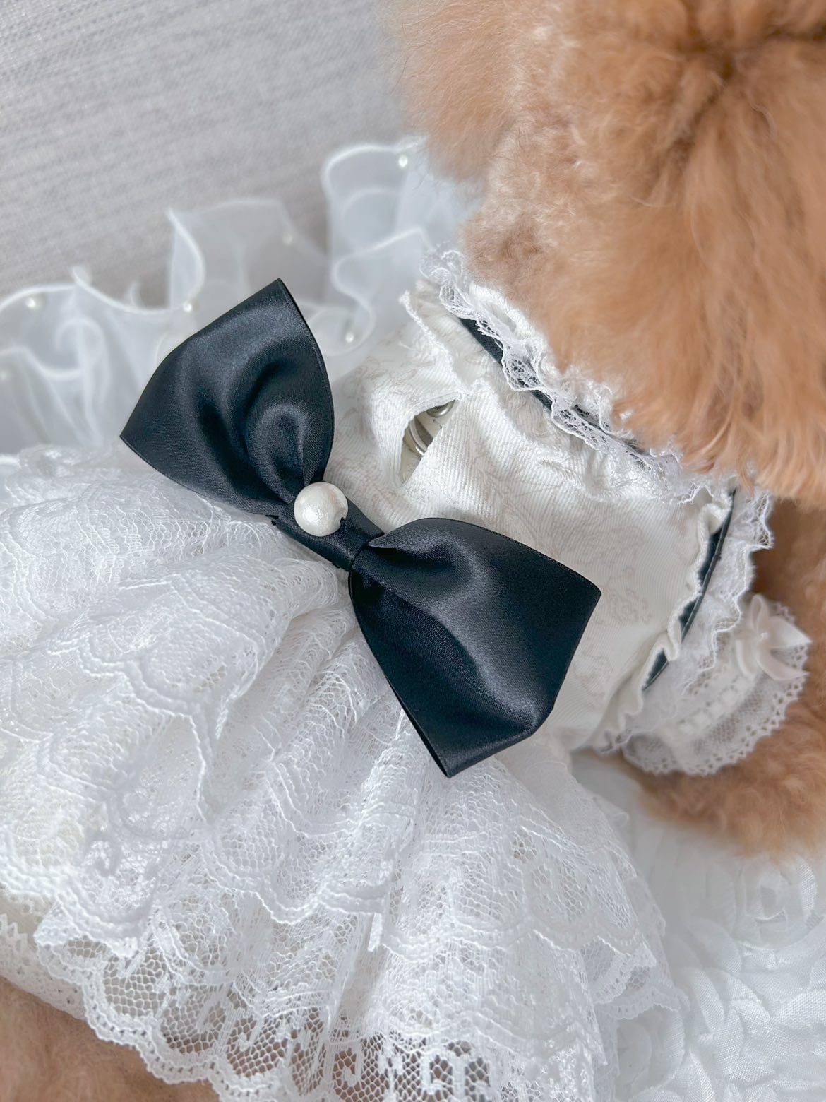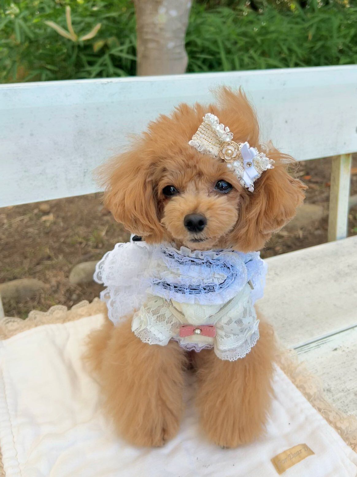 #犬とお出かけ #トワルドジュイ #レースハーネス #ブラックリボン #ベビーブルーリボン #ハーネスドレス #お散歩 #サテンリボン #犬可愛い