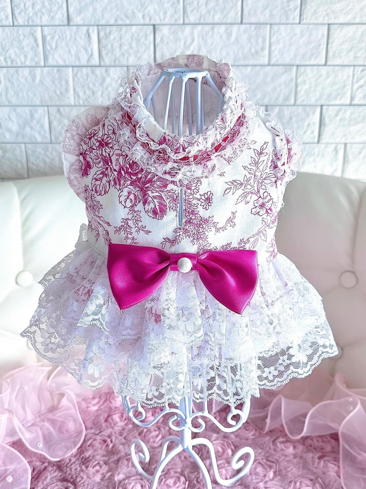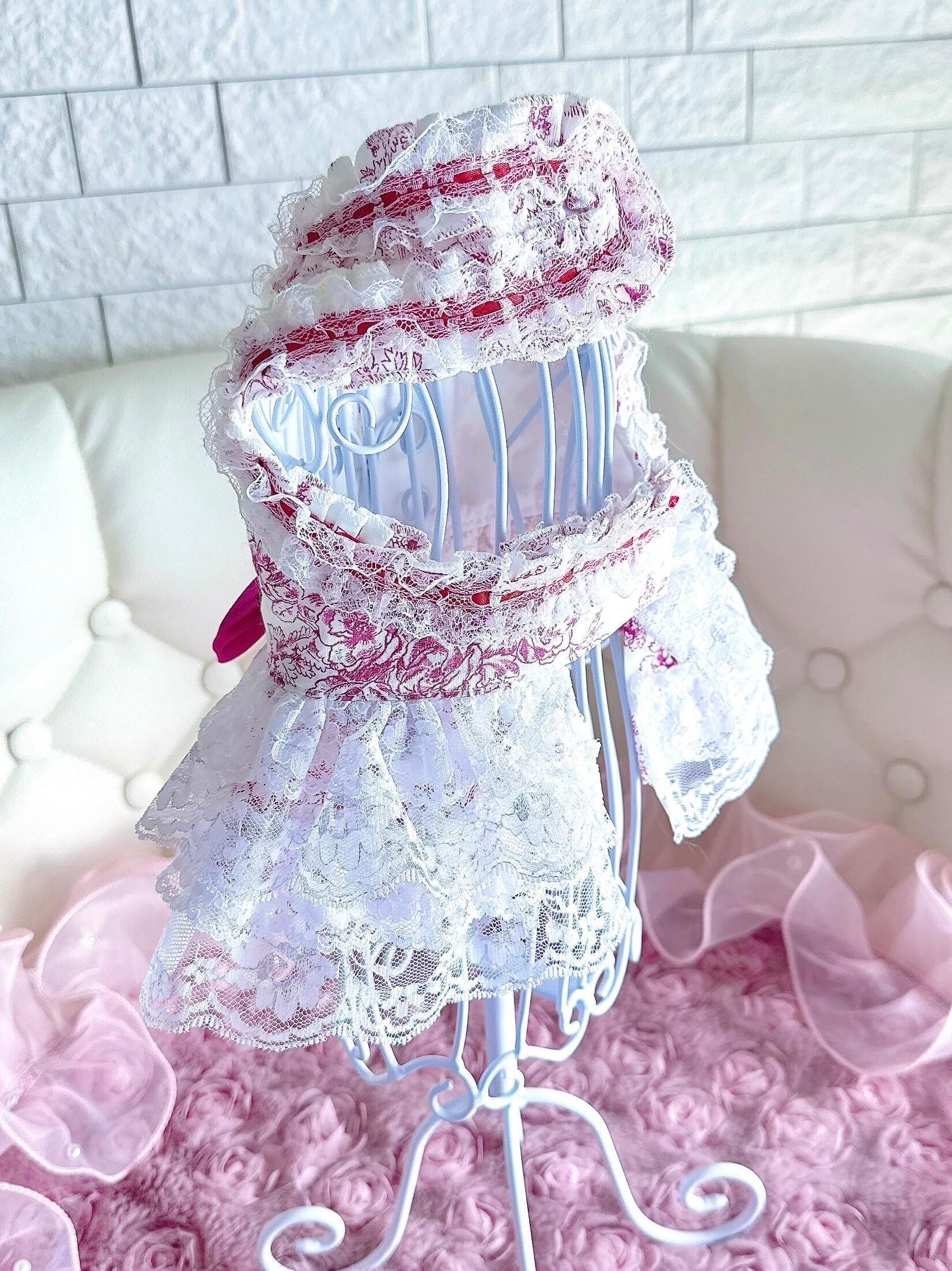 フランスのトワルドジュイ生地とたっぷりのレース