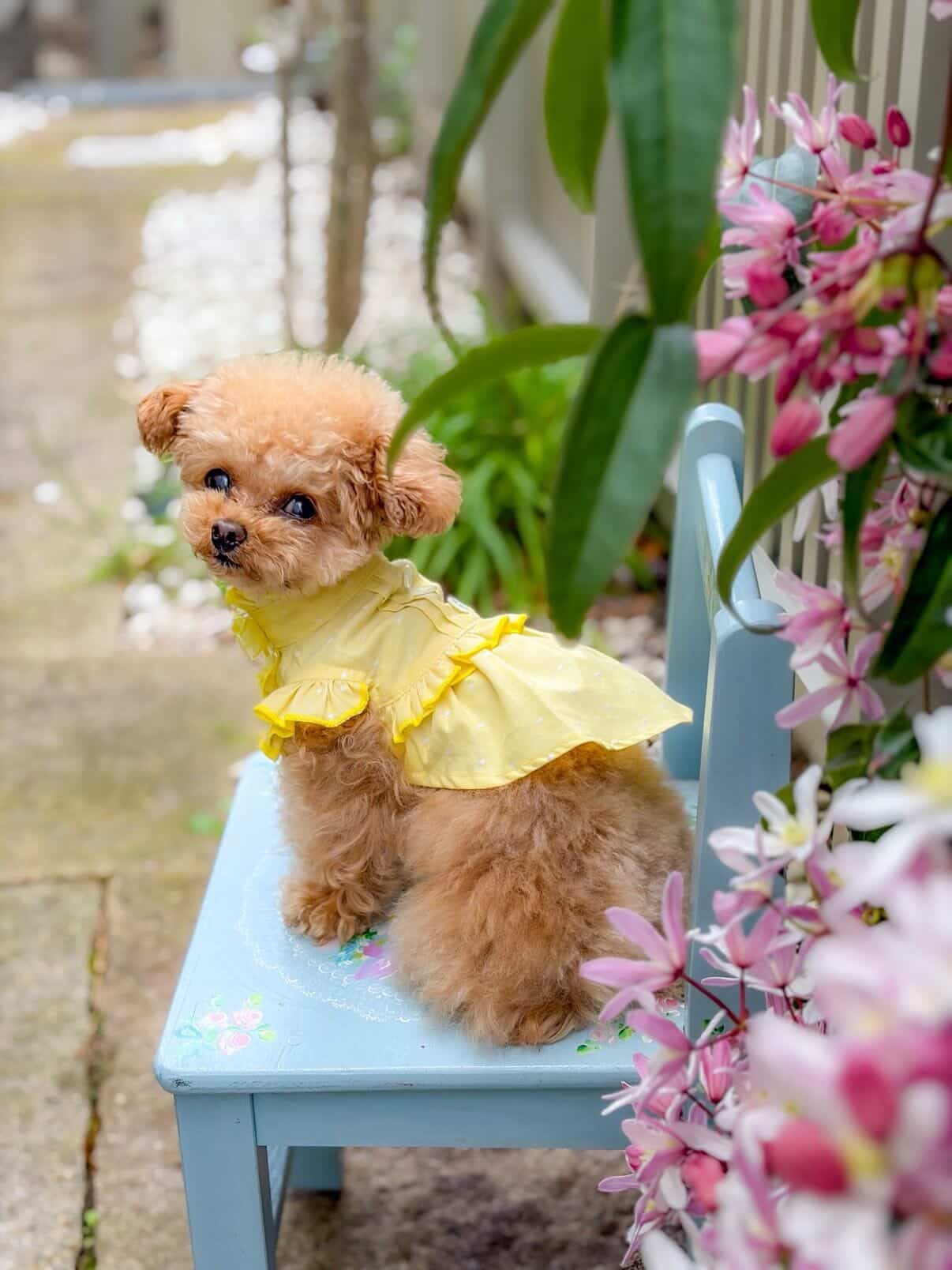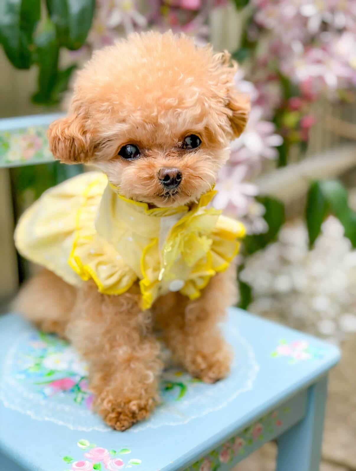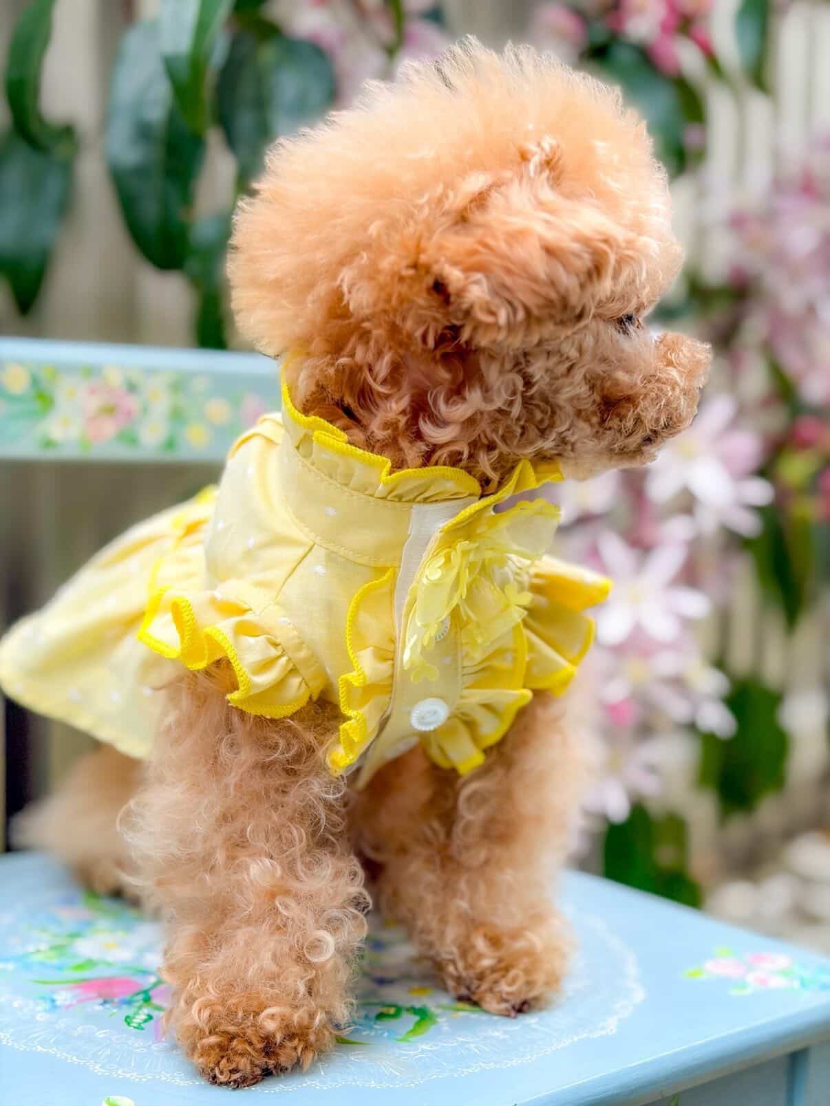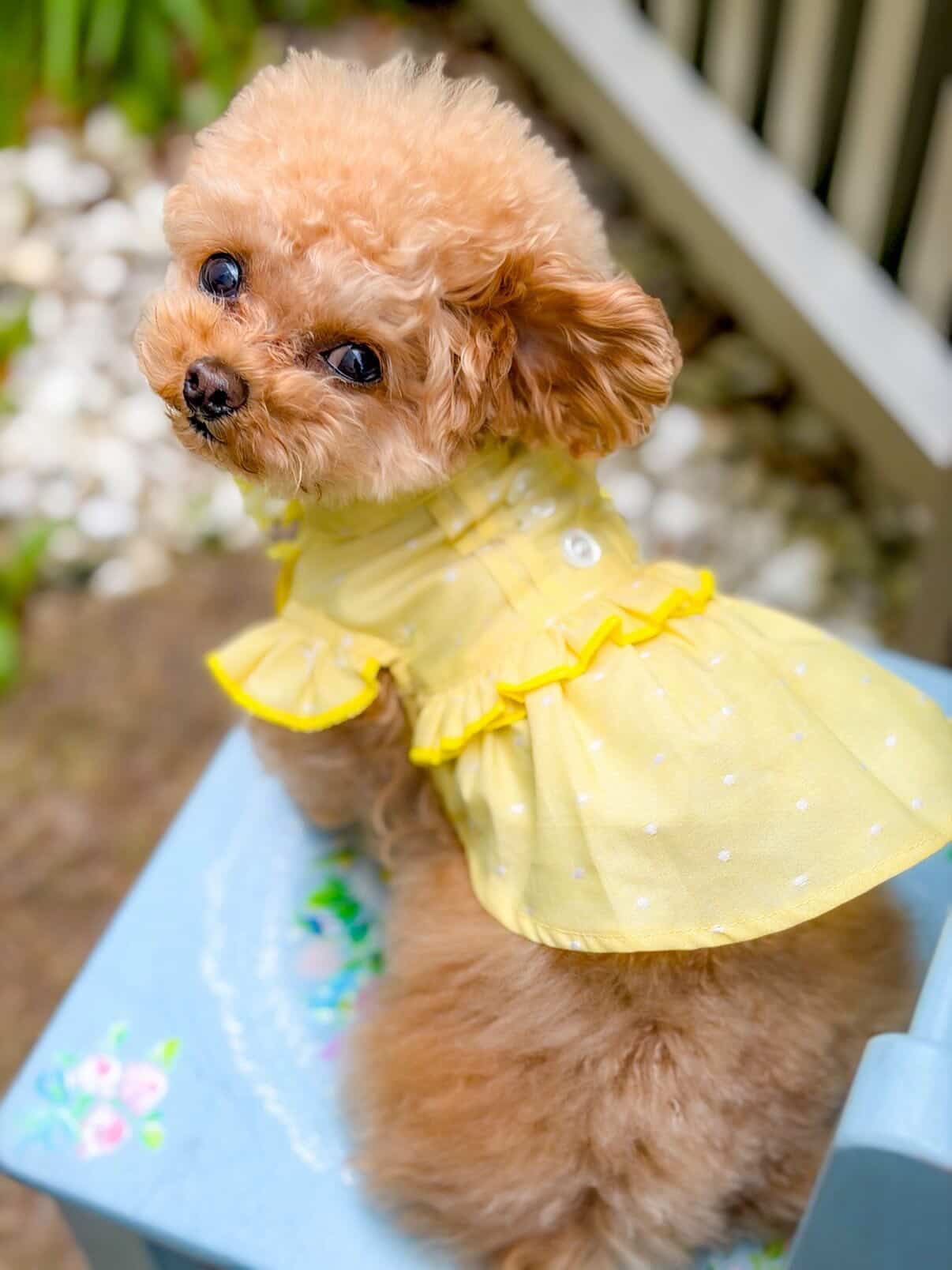 #愛犬とお出かけ #ひよこ色 #dogfashion #lovedog #犬のワンピース
